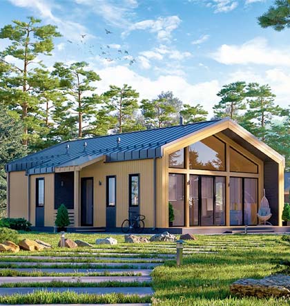 Проект SAN MARTIN — теплий, світлий та просторий. Умовний розподіл будинку на зони — це денна , де знаходяться вітальня, кухня та столова. Та відпочинкова — тут розмістилися три просторі спальні і санвузол.
