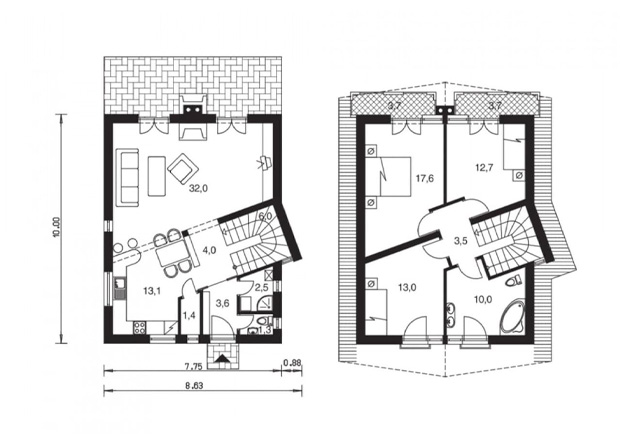 Площа будинку — 128 м². На такій площі розташовано цілих 3 спальні, 2 санвузли, кухня і велика вітальня. Проект підійде тому, хто шукає доступне рішення для сім’ї з 4-5 осіб. Головна перевага будинку — високі теплоізоляційні характеристики, його утримання буде дуже і дуже економним.